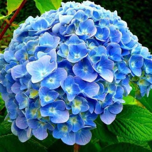 Цветение начинается в июне и продолжается по сентябрь. Соцветия крупные шаровидные до 20 см на кислых почвах голубые на нейтральных светло-сиреневые или розовые. Цветы образуются на побегах текущего и в прошлом году назад, куст долго смотрится эффектно и обильно цветет. Молодые побеги быстро растут и легко гнутся, а старые побеги обеспечивают прочную основу для соцветий.