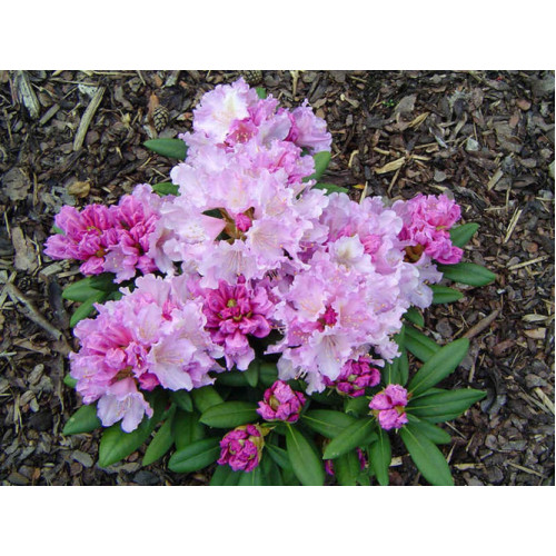 Куст со средней силой роста в высоту достигает 1 метра. Крона компактная, побеги прямые. В диаметре кустарник достигает 80 см. Листья овальные, очень плотные с характерным для растения темно-зеленым окрасом. Листья на зиму не осыпаются, но приобретают характерный оранжево-коричневый оттенок. Цветы нежно сиреневые с гофрированными краями. Они собираются в крупные соцветия. Цветение начинается со второй половины мая и длится примерно три недели.