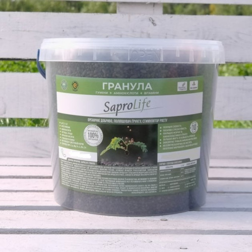 Гранулированное удобрение Сапролайф (SaproLife) 25% объемом 10 л – это органическое вещество, в составе которого содержатся все необходимые для растений компоненты, в том числе мезо- и микроэлементы. Препарат применяется для подкормки растительных культур, улучшения процесса образования почвы, улучшения его физических и водных свойств.