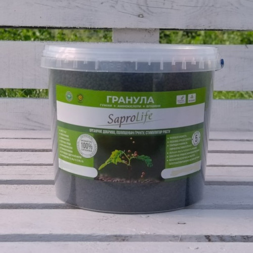 Гранулированное удобрение Сапролайф (SaproLife) 25% объемом 5 л – это органическое вещество, в составе которого содержатся все необходимые для растений компоненты, в том числе мезо- и микроэлементы. Препарат применяется для подкормки растительных культур, улучшения процесса образования почвы, улучшения его физических и водных свойств.
