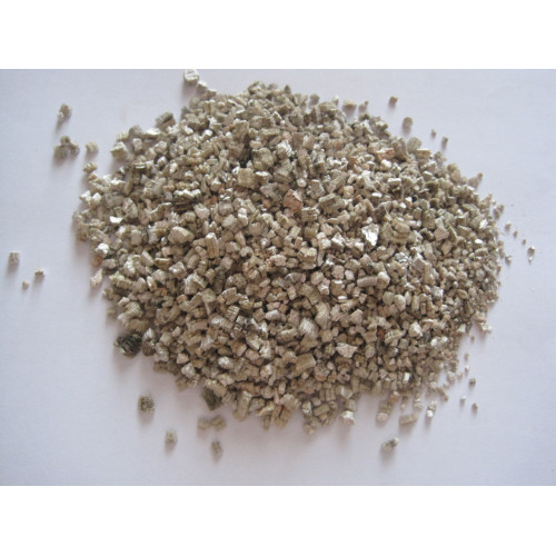 Вермикулит являет собой золотистые хлопья. Коэффициент водопоглащения составляет 400% от веса.