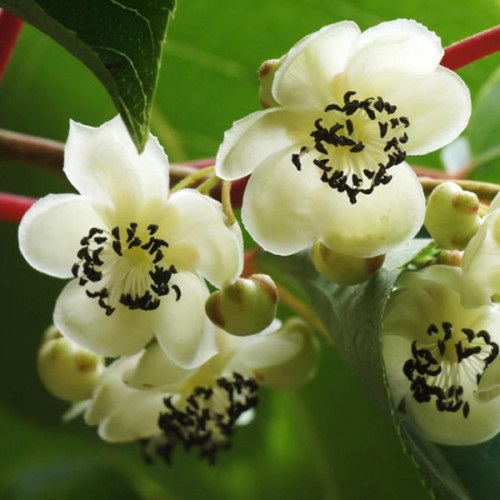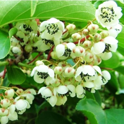 Лиана Мужской актинидии достигает 6 метров в длину и отличается особенной красотой своих цветов. Цветение начинается в конце мая и продолжается до начала июня. Хотя это растение не приносит плодов, его нежные кремовые цветы, похожие на цвет яблонь, распределяют вокруг себя удивительный сладкий аромат, дающий радость и уют. Листья Мужской актинидии имеют овальную форму и зеленую окраску, которая осенью переходит в желтые оттенки перед опадением.