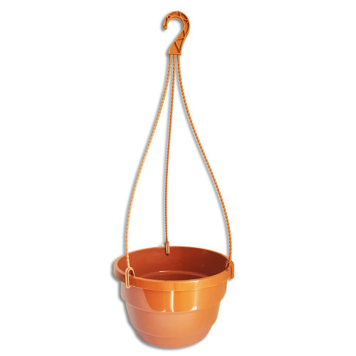 Горшки производятся украинской компанией LOT PLAST, которая заслуженно пользуется хорошей репутацией на рынке. Изделие выполнено в лаконичном стиле, благодаря цвету терракот будет органично выглядеть в любом интерьере или ландшафтном дизайне. Горшок имеет диаметр 23 см, высоту – 13,5 см, объем – 3,7 л. Подвес длиной 50 см входит в комплект.
