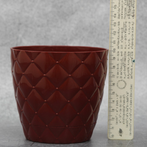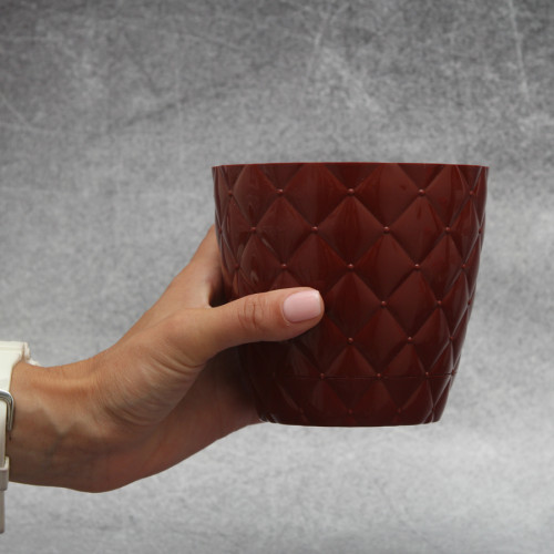 Вазон для растений Elif "Ромбик" 0,75 л, изготавливают из турецкого пластика в бордовом цвете. Вазон имеет округлую форму, а его внешняя часть декорирована маленькими ромбиками. В комплект к такому вазону входит специальная подставка, которая защищает растение от избытка влаги.