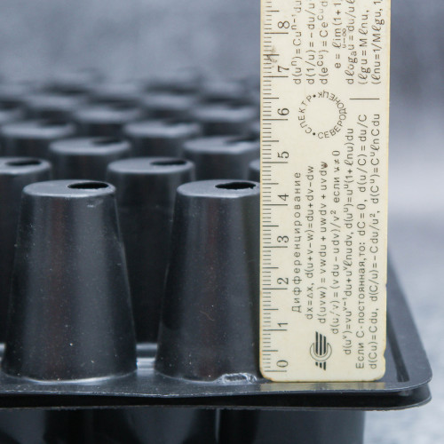 Внешний размер кассеты: 525х315 мм, объем одной ячейки – 30 см3, при общем количестве ячеек – 104 шт.