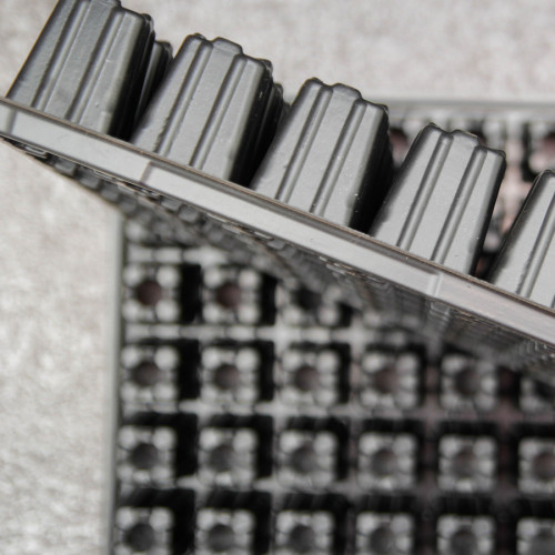 Внешний размер кассеты: 525х315 мм, объем одной ячейки – 64 см3, при общем количестве ячеек – 84 шт.