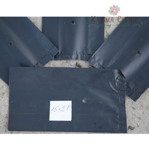 Пакеты очень прочные, способны выдержать довольно большой вес, как рассады, так и земли. Прочность – 100 микрон. Размер одного изделия - 17x30см, обьём 5 литров. Пакеты имеют фальцы по бокам, что позволяет увеличивать размер изделия. Также предусмотрены отверстия для стока воды. Тара окрашена в черный цвет, что как нельзя лучше, подходит для саженцев и их корневой системы.