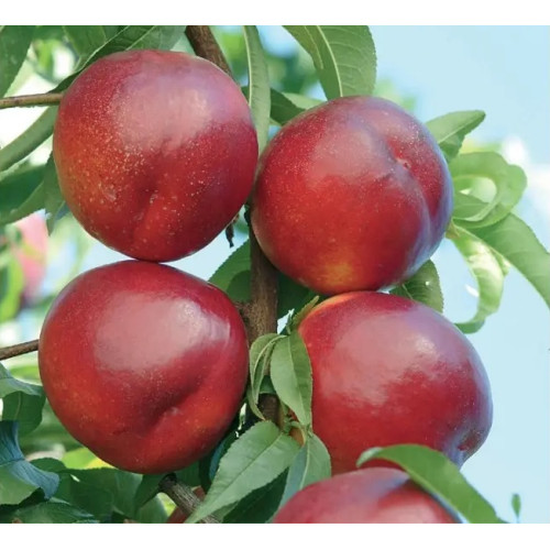 Нектарин Али Топ" (Alitop) - это итальянский сорт нектарина, который поражает своей сладостью и ярким внешним видом. Этот сорт нектарина имеет форму плодов, которые можно описать как округло-продолговатую и симметричную. Плоды отличаются насыщенным красным цветом на 90% поверхности, что придающая им привлекательный вид: средняя малая плодов составляет 165 г, а некоторые могут достигать веса более 230 г. Эта особенность делает "Али Топ" одним из самых больших сортов нектарина.