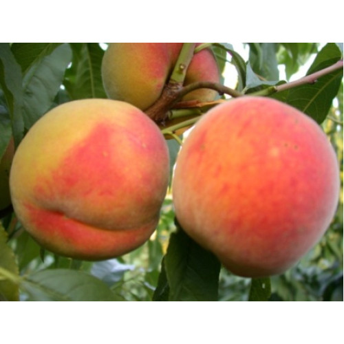 Плоды сравнительно крупные, круглой правильной формы. Масса персиков может достигать показателей около 200 гр, а иногда даже всех 400 гр. Кожица желтоватого оттенка с красным красивым румянцем, который занимает большую часть всей поверхности плодов. Мякоть очень сочная, также желтоватого оттенка, сладенькая на вкус и с приятным ароматом.