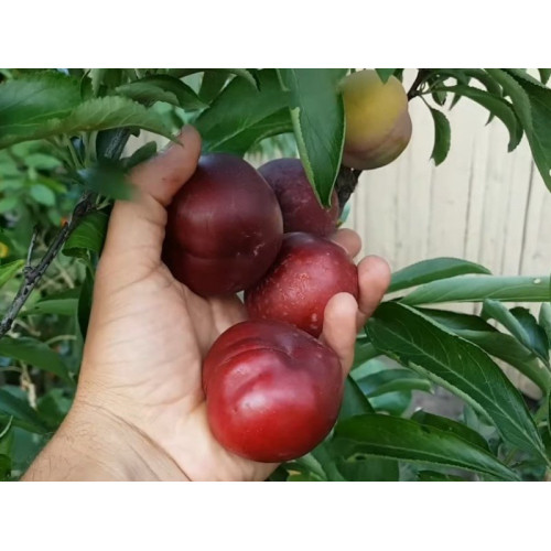 Колонновидный гибрид персик-слива был выведен селекционерами недавно. Его листья имеют характерную удлиненную форму, несколько напоминают листья персика. Сами саженцы более похожи на сливу. Они имеют колоновидную форму, взрослое дерево произрастает примерно до 2 м. Данный сорт самоопыляется, предпочитает садовые почвы.