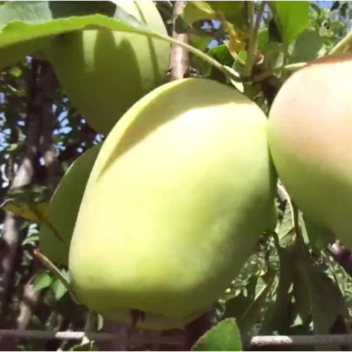 Плоды сорта Матрешка желтого цвета с легким румянцем у плодоножки, имеют круглую, слегка плоскую форму. Размер их достаточно компактен, а вес составляет около 100-150 г. Яблоки Матрешка обладают выраженным сладким вкусом и приятным ароматом. Первый урожай появляется на деревьях уже на второй год после посадки. В выращивании яблоня не требует каких-либо особых условий или сложного ухода, хорошо переносит любую погоду и устойчивость к мучнистой росе.
