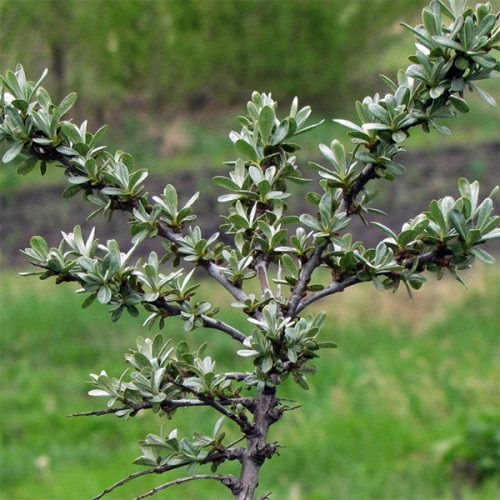 Куст сорта Лейкора вирастает высотой до 3 метров, ежегодно добавляя по 50-60 см. Имеет аккуратную, слегка раскидистую крону овальной формы, которая выглядит декоративно и не загущается. Листья узкие, удлиненные, с характерным серебристым оттенком, благодаря чему растение привлекательно даже без плодов.