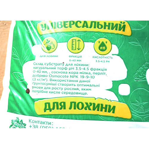 Вес упаковки субстрата 8 кг, объем 40 л. Уровень кислотности pH 3,5-4,5. То есть эта почвосмесь подходит для растений, нуждающихся в кислой почве, таких как голубика и рододендроны.
