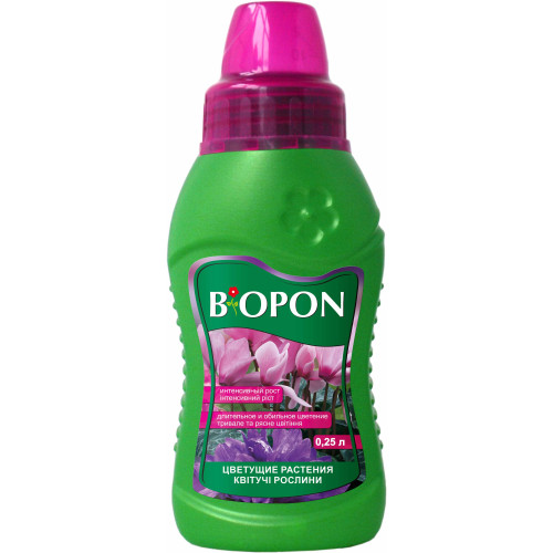 Добриво мінеральне для квітучих рослин Biopon - це комплекс поживних речовин, основою якого є окис фосфору і калію, азот, молібден, цинк, мідь, залізо.