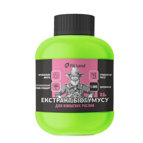 Склад: екстракт вермікомпоста (біогумусу) "Fit Land" для кімнатних рослин містить гумінові та фульвові кислоти, макро- та мікроелементи (N, P, K, Ca, Mg, Mn, Zn, S, Cu, Fe та інші), амінокислоти, вітаміни, ферменти.