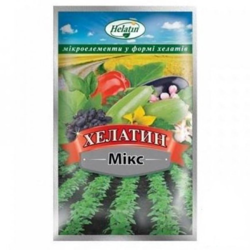 Ф-Хелатин - Мікс 50 мл - вид екологічно чистого мікродобрива. Хімічний склад - форма хелатів, які активно сприяють підгодівлі. Препарат варто вводити насадженням якщо у них спостерігається уповільнення в цвітінні і зростанні, при появі некрозно і хлорозной хвороб на листі, при слабкості і обпаданні.