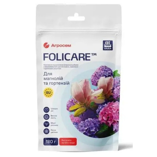 Добриво "Yara Folicare" пришвидшує закладання бруньок, сприяє фотосинтезу та забезпечує гортензіям та магноліям рясне та багате цвітіння. Воно також покращує імунітет рослин та робить їх значно стійкішими перед збудниками різноманітних захворювань.