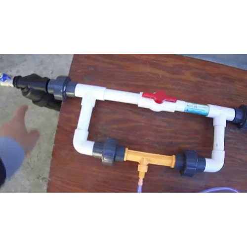 Монтаж його здійснюється тільки після дискового фільтра очищення води в розриві магістрального водопроводу через обвідний вузол - «байпас». Подача добрив до інжектору Вентурі здійснюється через трубку, на кінці якої встановлений сітчастий фільтр і регулятор потоку.