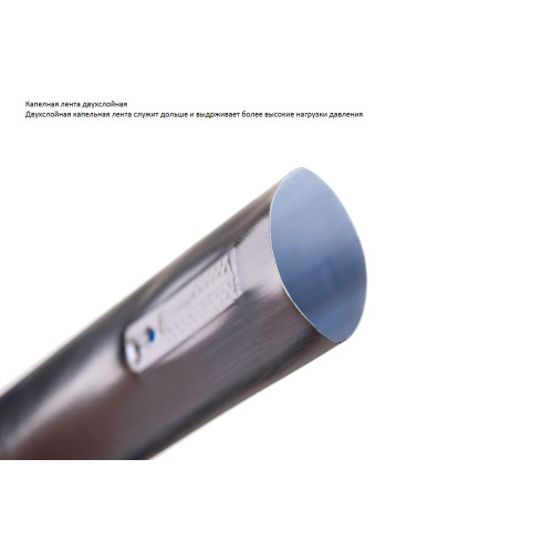 Крапельна стрічка емітерного типу IRTECH двошаровий, це дозволяє використовувати її в системі з підвищеним тиском. Стійка до зовнішніх чинників, а це можливість повторно використовувати її більше 3 років (акуратно змотуючи і висушуючи на зиму).