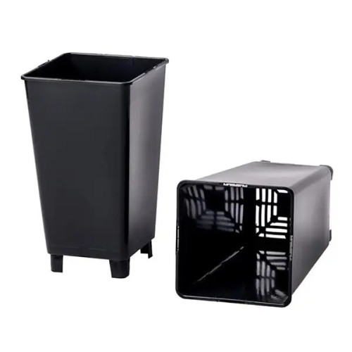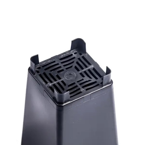 Горщик має квадратну форму, невеликі ніжки та безліч отворів на дні. Це дозволить ефективно відводити зайву вологу та забезпечувати кореневу систему повітрям.