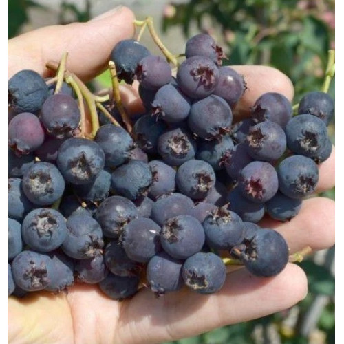Ягоди насиченого пурпурового кольору, майже чорні з характерним восковим нальотом. Діаметр кожної ягоди близько 1,4 см. Терміни дозрівання припадають на початок літа.