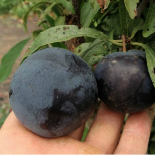Плоди досягають середньої маси 90 грам, але зустрічаються плоди вагою і 150 грам. Шкірка щільна, тонка має фіолетовий, практично чорний колір з характерним восковим нальотом. М'якоть бурштинового кольору з сильним ароматом, великою кількістю соку і приємним десертним смаком.