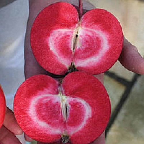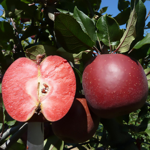 Яблуня сорту Трініті відносно нова селекція з нехарактерним червоним кольором м'якоті. Терміни дозрівання припадають на початок вересня.