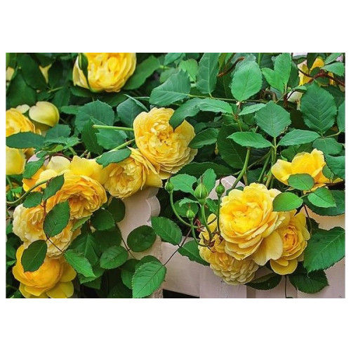 Роза Вьючка Жовта - сорт плетистой троянди. Селекціоновані в Німеччині. В висота кущі досягають 3 м. Тому при вирощуванні потрібна опора. Без опори можна вирощувати в формі розлогого шрабов до 1.5 м в висоту. Пагони сильні, гнучкі, покриті блискучою, великої листям. Квіти чашеобразной форми складаються з 50 - 60 пелюсток і досягають в діаметрі 12 см. Часто квіти утворюють кисті з 2 - 4 бутонів. Квіти яскраво-жовті, ароматні. Цвітіння рясне, практично безперервне з травня по вересень.