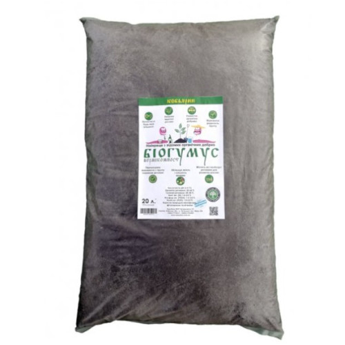 Біогумус Кобьярин 20 л – органічне гранульоване добриво, виробництва України. Якісний, екологічно безпечний продукт. Добриво виготовлене з використанням популяцій дощового черв'яка, які переробляють рослинні та тваринні органічні відходи.