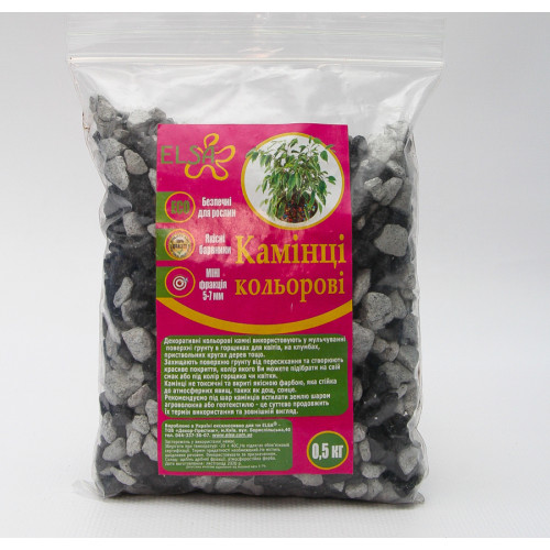 Камені декоративні мікс зебра ELSA розфасовані в пакети по 500 грам. Це ідеальний варіант для мульчування і прикраси горщика з рослиною. Використання каменів не тільки прикрашає рослину, а й уповільнює випаровування вологи.
