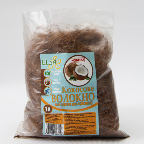 Кокосове волокно ELSA - органічна добавка до ґрунтів, призначена для вирощування кімнатних рослин. Субстрат на 100% складається з волокон кокосових горіхів. Воно відрізняється стійкістю до вологи. Це пов'язано з високим вмістом лігніну. За рахунок таких унікальних властивостей кокосове волокно можна використовувати до 5 років. За цей час субстрат не розкладається і майже не змінює свої властивості.