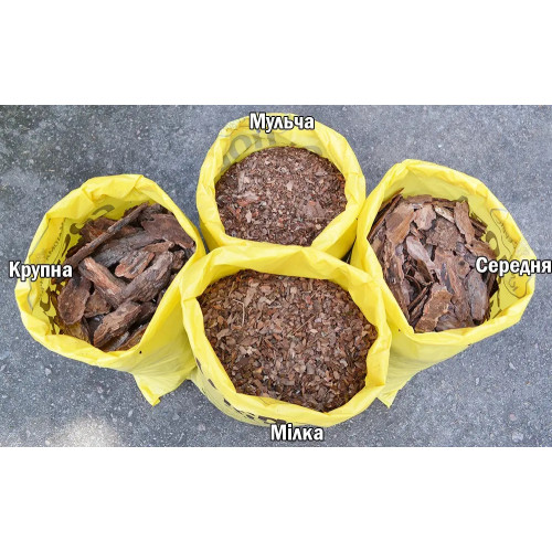 Соснова кора мульча фракції (0-10 мм) є ідеальним вибором для мульчування великих площ, таких як ділянки навколо дерев, кущів та квітників. Вона не тільки надає вашому саду доглянутого вигляду, але й виконує важливі функції для здоров'я рослин. Використання кори соснової мульчі особливо ефективне для захисту ґрунту від пересихання та для створення міцного бар'єру проти бур'янів.