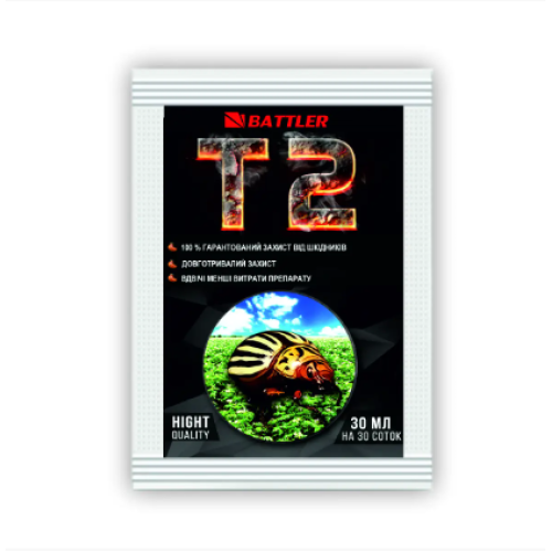 Препарат діє на комах на всіх стадіях розвитку. І ще, інсектицид Т2 не змивається дощем, проте обробку потрібно проводити хоча б за вісім годин до випадання опадів.