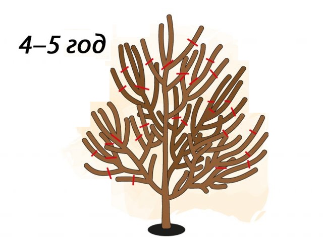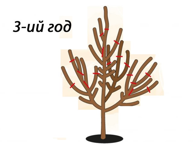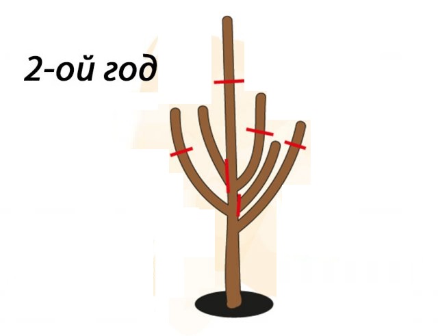 Формирование кроны такое же, как в минувшем году, с обязательной санитарной обрезкой.