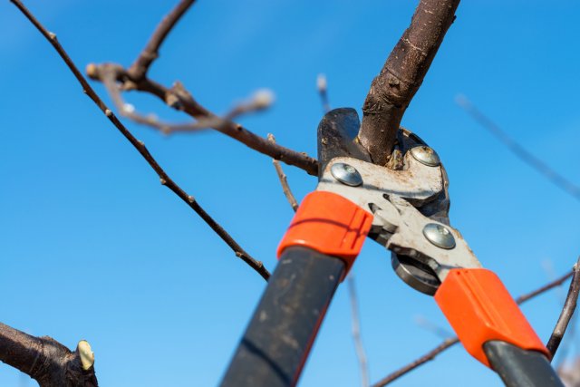 Техника обрезания: планируемые побеги удаляют на кольцо. Для предотвращения травмы изначально выполняется снизу надпил, после чего ветка отпиливается в верхней части.