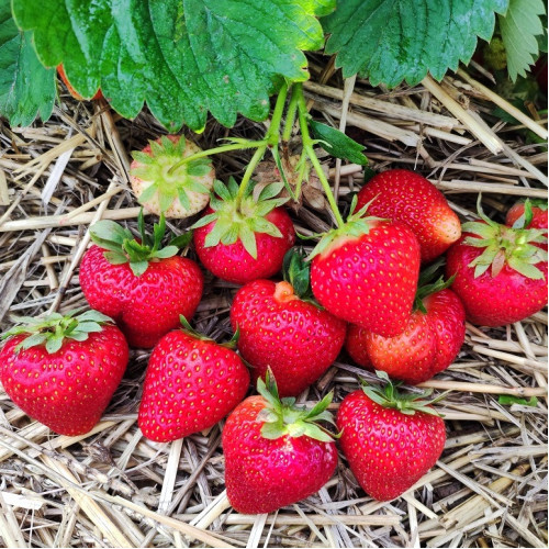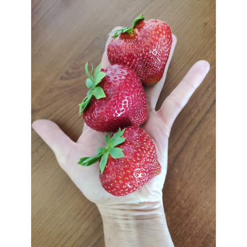 Кусты сильные, хорошо развитые, формируют длинные цветоносы, поэтому ягоды расположены открыто и их удобно собирать. Плоды большие средний вес около 19–20 грамм форма правильная аккуратная. До 96 процентов урожая составляют качественные товарные ягоды, что очень выгодно для продажи. Вкус приятный сладкий с легкой кислинкой содержание сахаров около 10 Brix, поэтому ягоды подходят как для свежего потребления, так и для переработки.