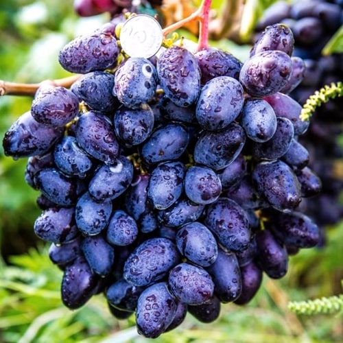 Кусты сильнорослые. Лоза хорошо вызревает. Грозди крупные, средний вес 1 кг. Форма коническая. Ягоды овальные, насыщенной сине-фиолетовой окраски.