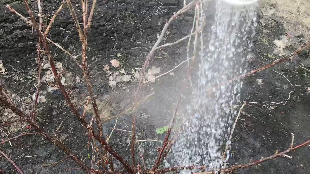 Некоторые садоводы проводят обработку из лейки, именно кипятком. Но при этом, расстояние до кустов должно быть не менее 1 метра. С такого расстояния вода остужается и не навредит почкам.
