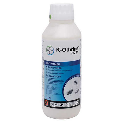 К-Отрин 50 SC к.с. – средство защиты от вредителей. Препарат попадает через пищеварительную систему и влияет на тело насекомого. Отрин предназначен для дезинфекции зданий или транспорта. К-отрини 50 SC л.с. эффективно уничтожает мух, тараканов, комаров, клопов и тому подобное.